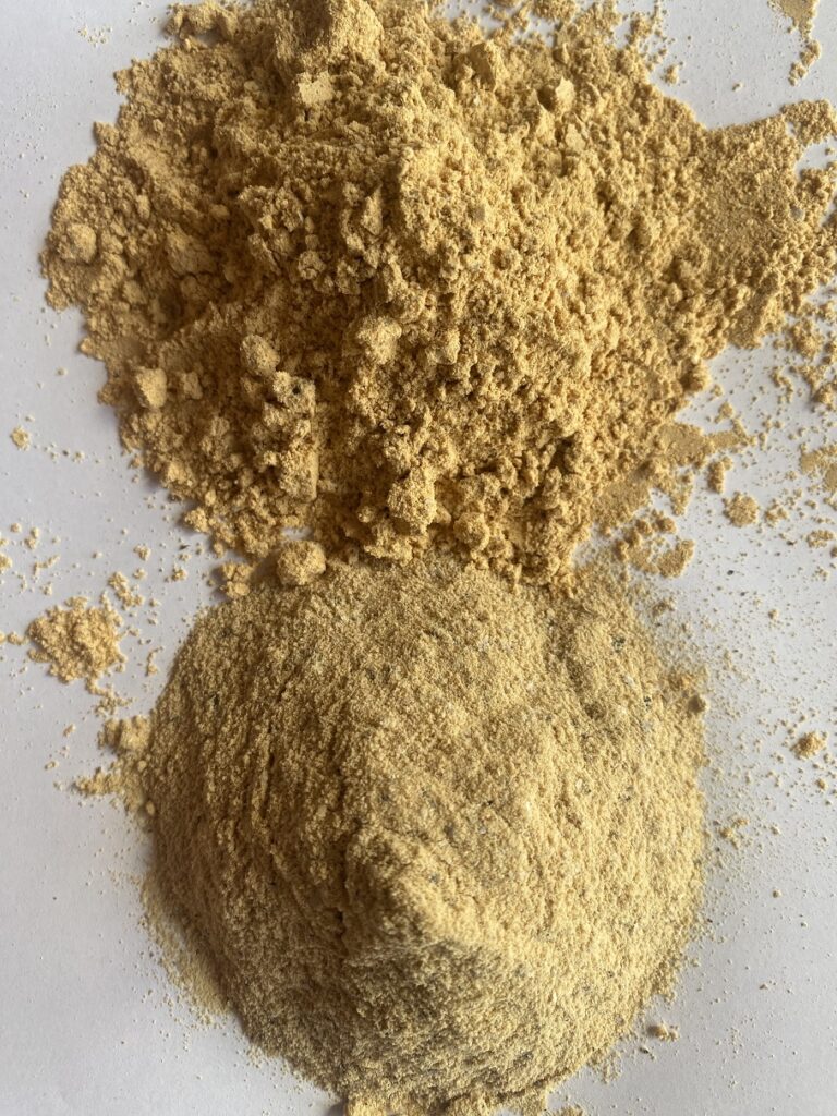 2025年11~12月に乾いた鞘から順次収穫し、その鞘を更に天日干しにして乾燥させ豆を取り出し焙煎して粉にしました。