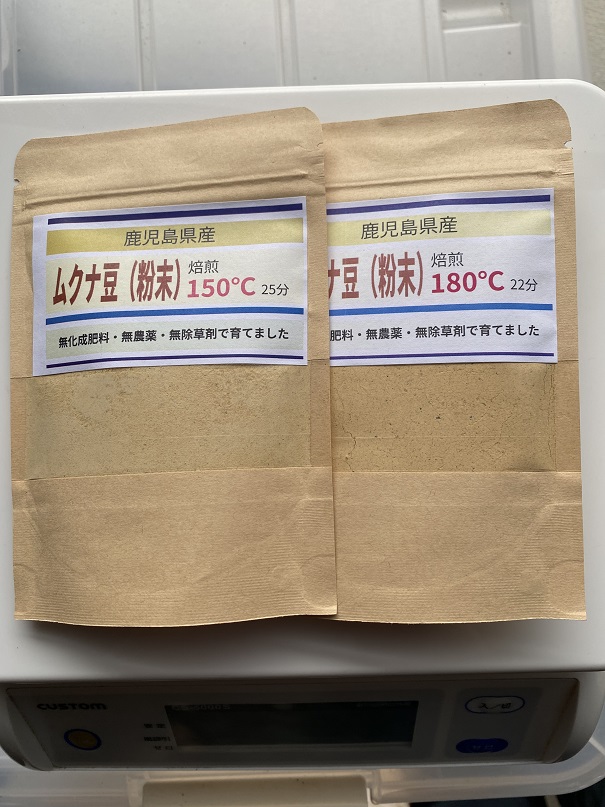 焙煎温度によって味などに違いが出ます、低温だとエグ味が残り、高温だと香ばしくおいしくなりますが、Lドーパが壊れてしまいますので、こちらでは180℃以下で時間をかけゆっくりと焙煎しています。