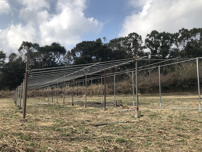 ムクナ豆の棚を建てました ムクナ豆 2025/3/22026/3/12 単管を2m置きに立て28mの長さで3m幅の棚を作りました、どれくらいのムクナ豆が収穫できるのか楽しみです 来年はもう少し棚を広げようと考えています