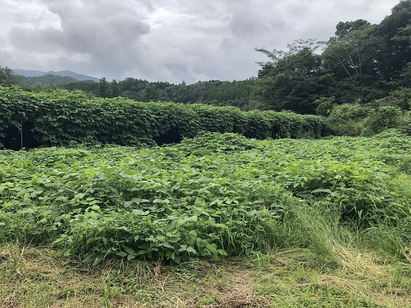 手前の下の方に蔓延っているのが種が余ったから地植えで育てたムクナ豆です、ムクナ豆の繁殖力に雑草が負けてしまって雑草対策には良い感じになりました